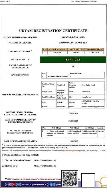 Copyright © 2025 Creonova Interiors LLP. All rights reserved.