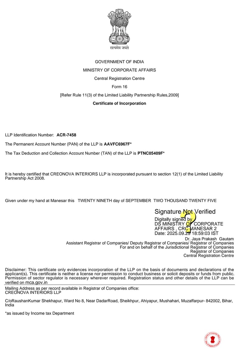 If you are one of the organizations listed in paragraph 2 above and are interested in linking to our website, you must inform us by sending an e-mail to CREONOVA INTERIORS LLP. Please include your name, your organization name, contact information as well as the URL of your site, a list of any URLs from which you intend to link to our Website, and a list of the URLs on our site to which you would like to link. Wait 2-3 weeks for a response.