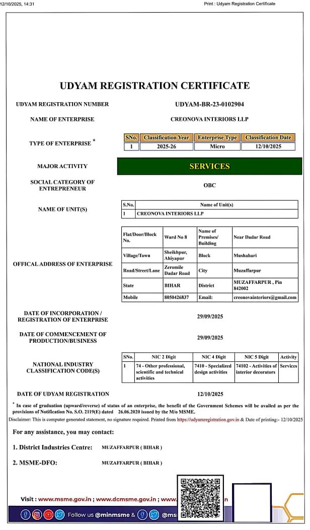 These terms and conditions outline the rules and regulations for the use of CREONOVA INTERIORS LLP's Website, located at https://www.creonovainteriors.com.